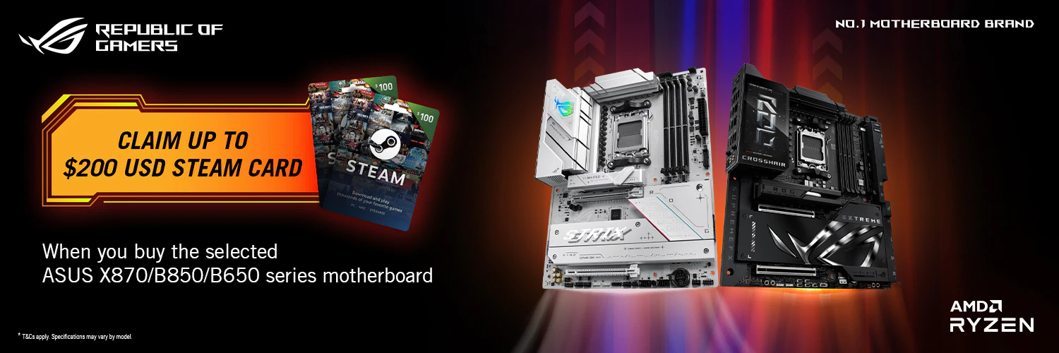 Purchase the selected X870/B850/B650 series motherboards to receive up to $200USD steam card