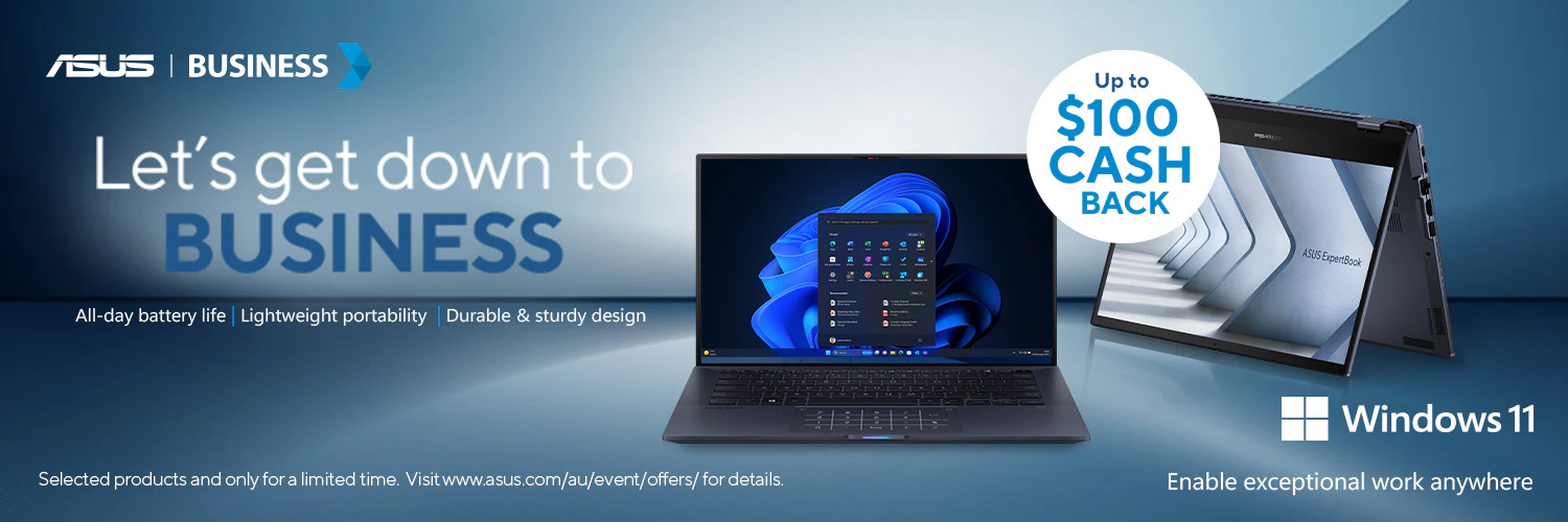 Get up to $100 cashback when you purchase selected ASUS Business products.