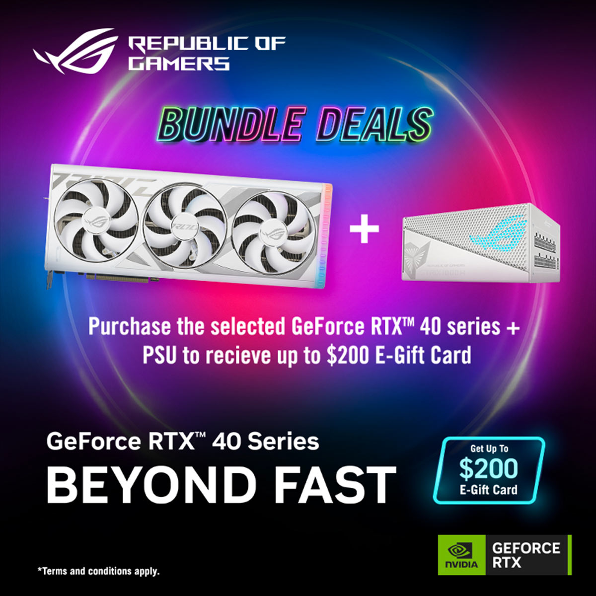 Purchase one of the selected GEFORCE RTX40 series graphics card and one of the selected power supplies to be eligible to receive up to $200 CASH BACK