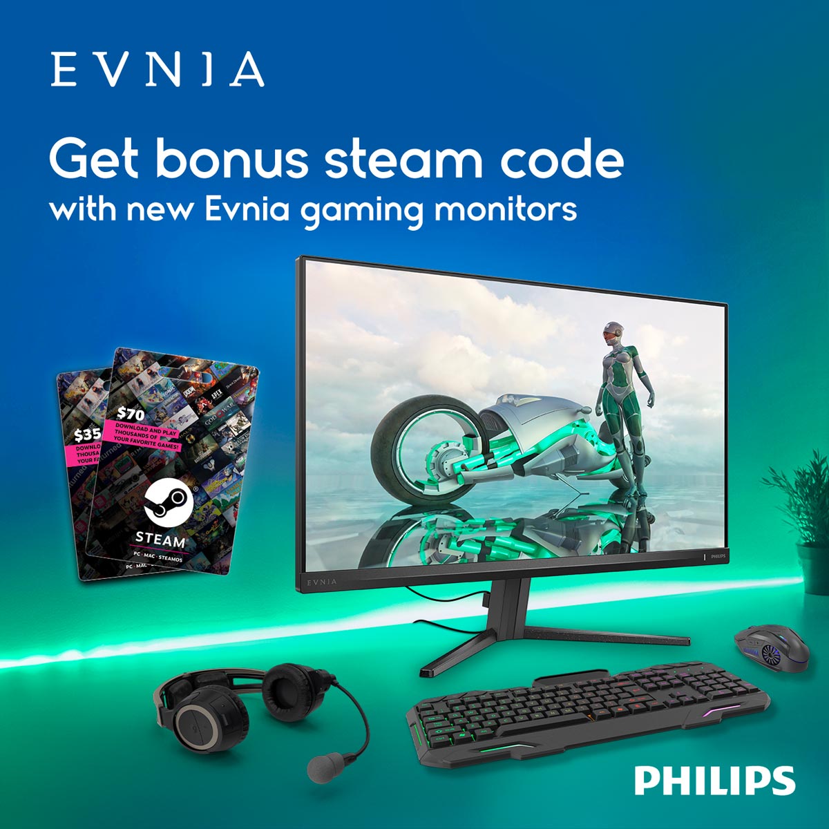 Bonus Steam Wallet Code with Philips Evnia New Gaming Monitors