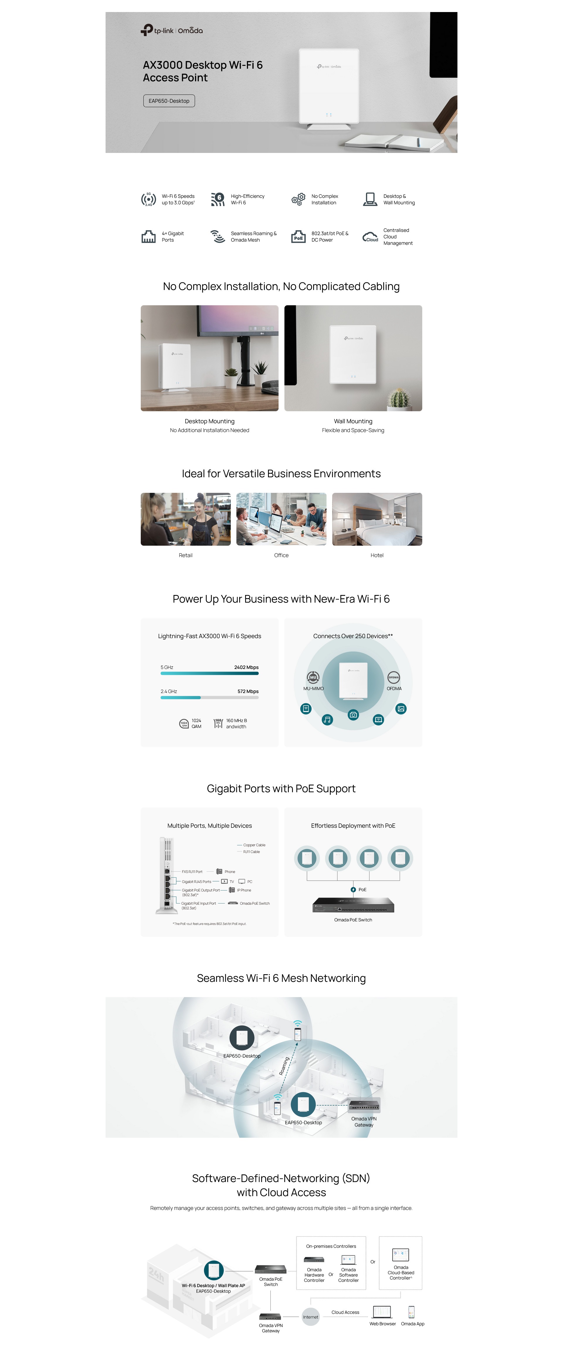 TP-Link Omada EAP650-Desktop - AX3000 Desktop Wi-Fi 6 Access Point