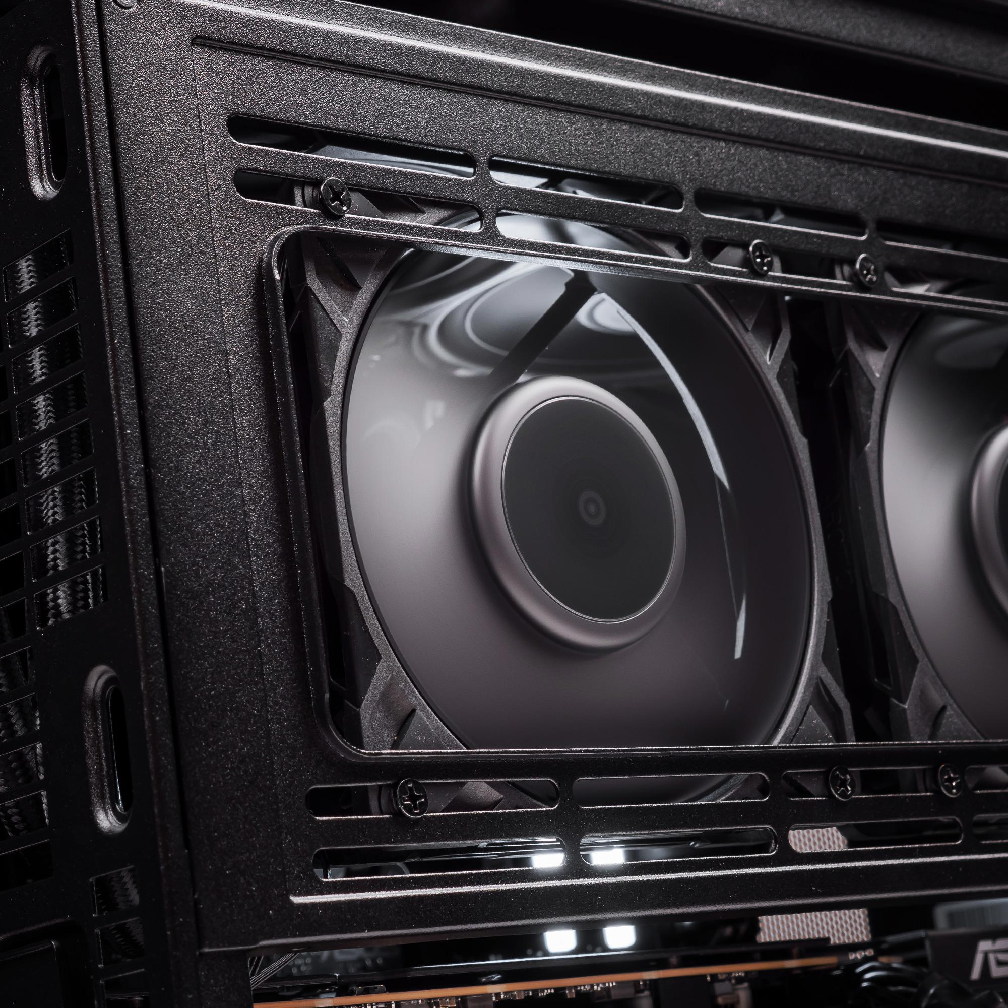 Because the fan design of the P12 Slim PWM PST is optimised for focused airflow, it generates high static pressure. The fan enables extremely efficient cooling and good airflow — even with increased air resistance. This makes the P12 Slim PWM PST particularly well-suited for use on concealed case intakes, dust filters, radiators, and generally in small cases that have little space for free airflow due to compactly placed hardware.